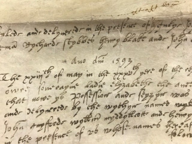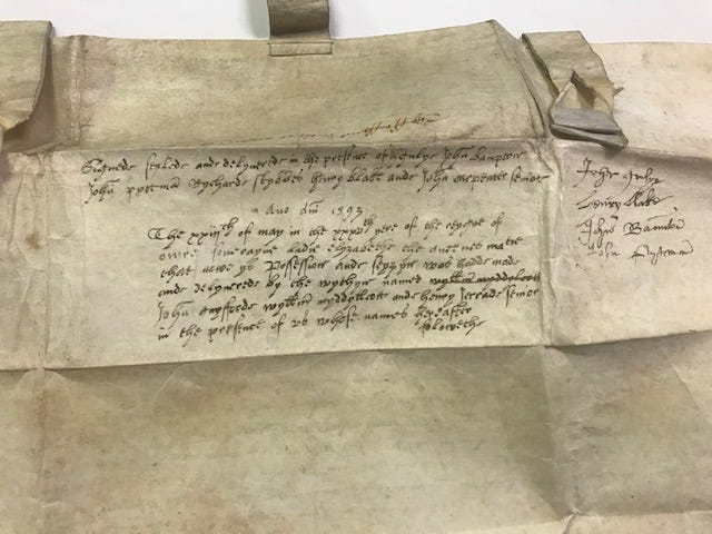 It is originally from Saint Thomas, a Caribbean island, and dates to 1593. The contract is written on Vellum, which is an animal membrane- often lambskin- which was found not only to be durable but in abundance throughout the Caribbean. It is one of my most treasured finds. It documents the history of a people and their time on earth.